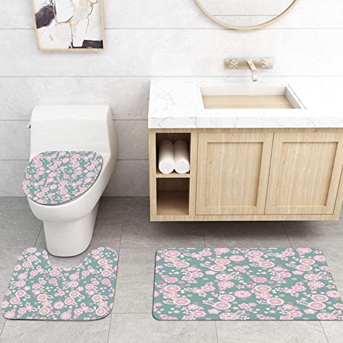 OTRAHCSD Tapis de bain roses pastel plus tapis de contour +...