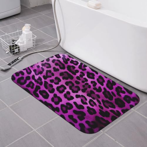 NONHAI Tapis de bain en pierre, motif léopard violet et terr...