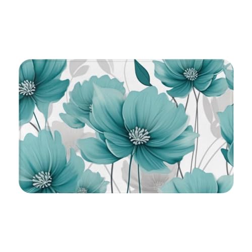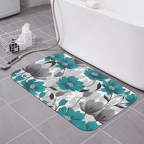Tapis de bain floral sarcelle gris blanc, super absorbant sé...
