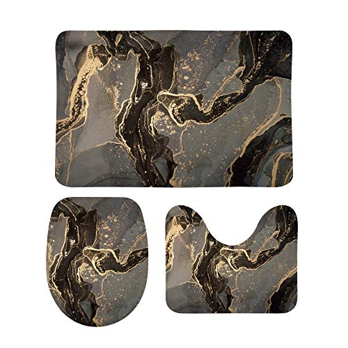 Tapis de salle de bain marbre noir, gris, doré, art moderne...