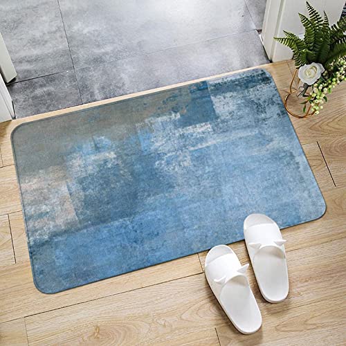 Tapis de bain absorbant abstrait gris et bleu, tableau abstr...