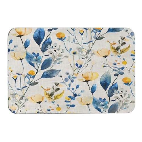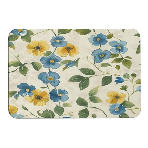 Tapis de salle de bain floral bleu et jaune, super absorbant...