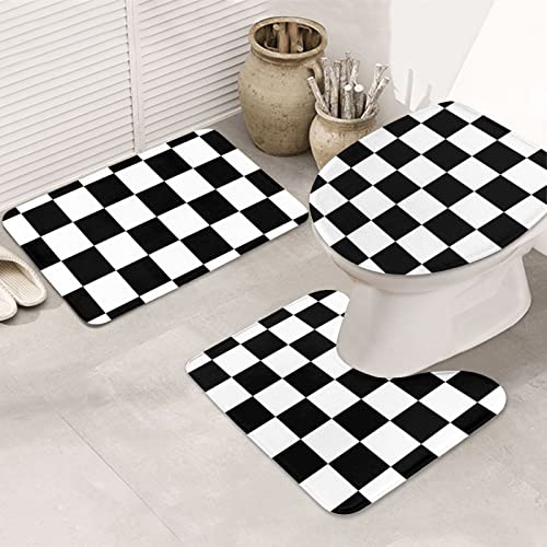 Lot de 3 tapis de bain antidérapants noir/blanc