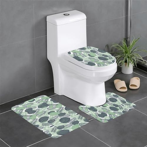 CarXs Lot 3 Tapis de Bain Motifs Feuilles Tropicales Verts