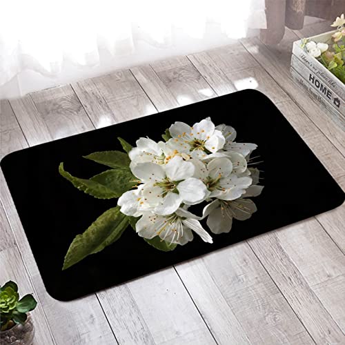 Tapis de bain doux flanelle motif bouquet vert blanc noir 40...