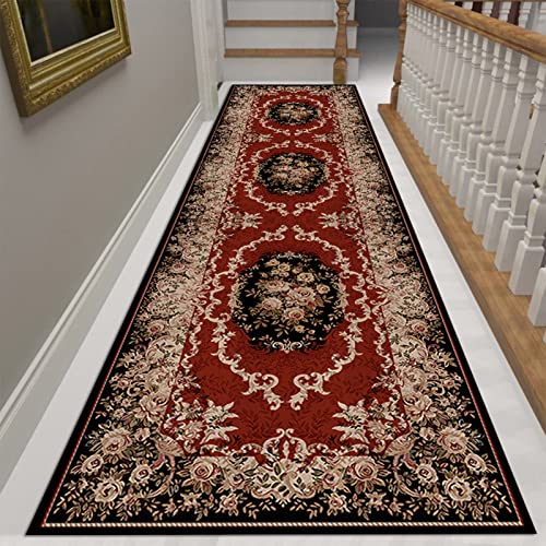 Tapis couloir floral rouge noir, coureur de couloir élégant...