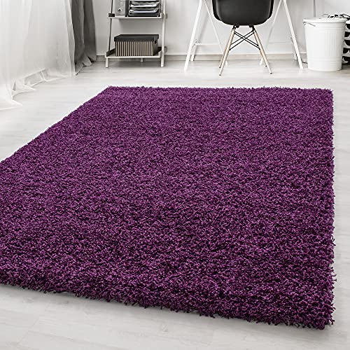 Tapis à Poils Longs, Couleur Violette, Unicolor - Monochrome...