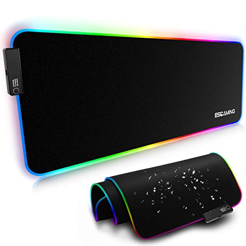 Tapis de souris gaming RGB 800x300 mm, 14 effets LED, étanch...
