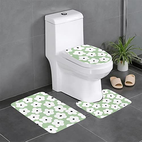Tapis de salle de bain verts, 3 tapis U, contour WC, absorba...
