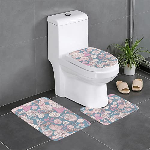OTRAHCSD Tapis de bain floral rose 3 tapis + Housse d'abatta...