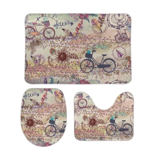 OTRAHCSD Tapis de bain floral vintage 3 tapis plus housse d'...