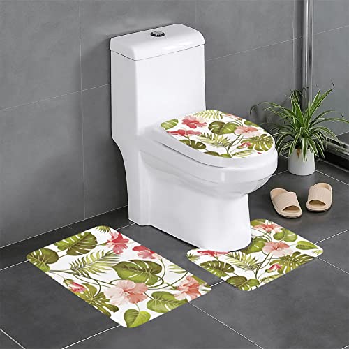 OTRAHCSD Tapis de bain hawaïen 3 tapis + couvercle WC