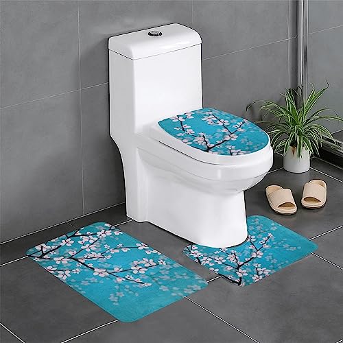 Ensemble Tapis de Bain Fleur Cerisier Sakura WC Antidérapant