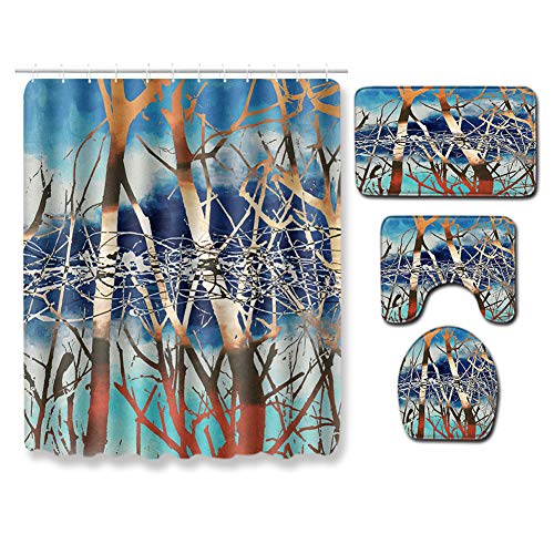 Lot de 4 rideaux aquarelle arbre tapis bain abattant WC