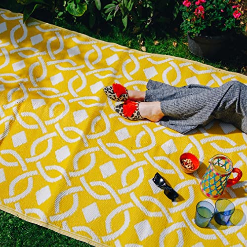 Tapis d'extérieur géométrique jaune imperméable 180x120cm