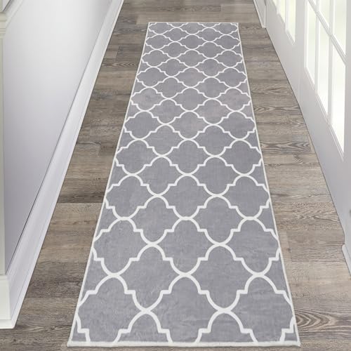 HNVNER Tapis de Couloir Long Gris Antidérapant