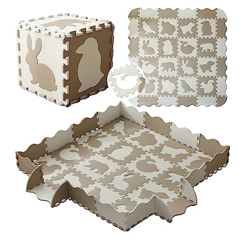 Tapis Mousse Bébé ÉVA, Puzzle Parc Animal Gris Brun