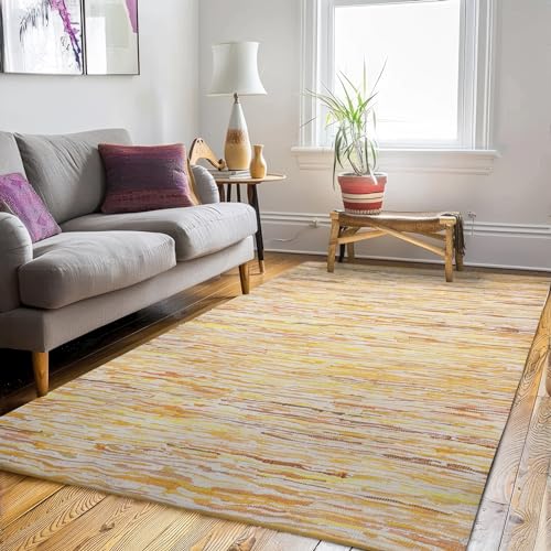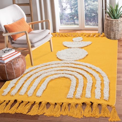 LINROMIA Tapis Boho Jaune 120x180cm Coton Lavable