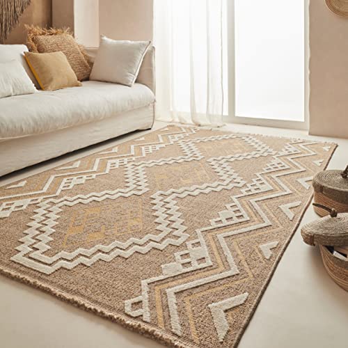 Nature Tapis Jute Aspect Moderne Boho 9054 Jaune