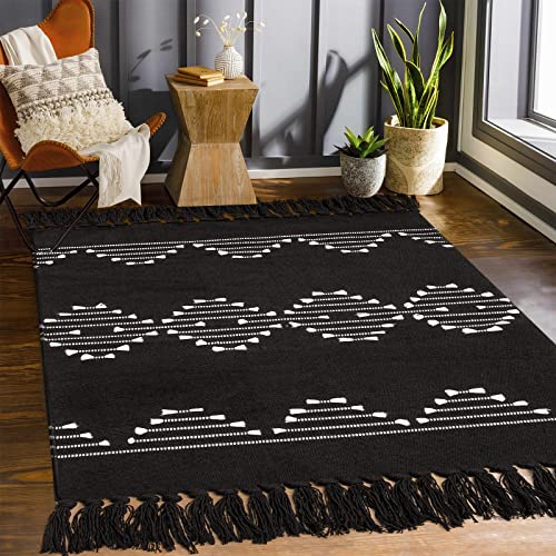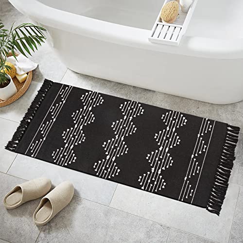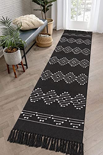 Lineroma Tapis Boho Couloir 60x150cm Noir Blanc Coton Lavabl...