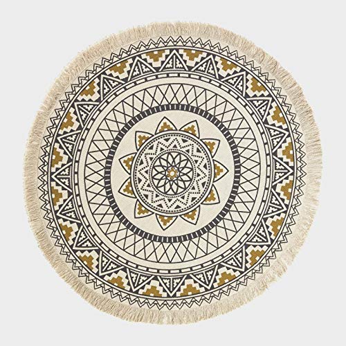 Homescapes Mandala Noir et Jaune Tapis Rond Coton 145cm