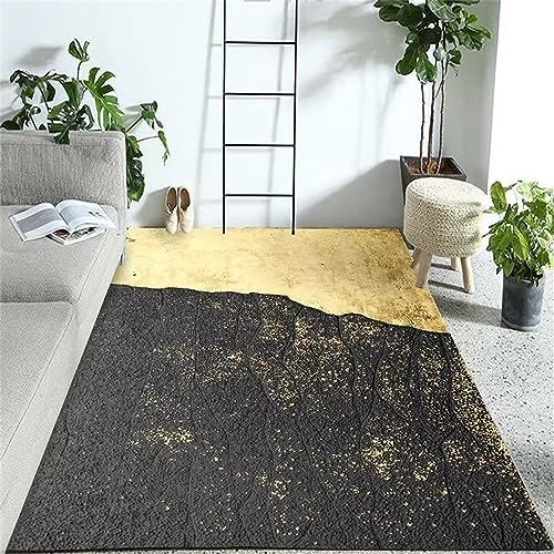 Deco Salon Minimaliste Tapis Noir et Jaune Facile à Entreten...