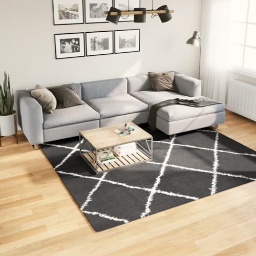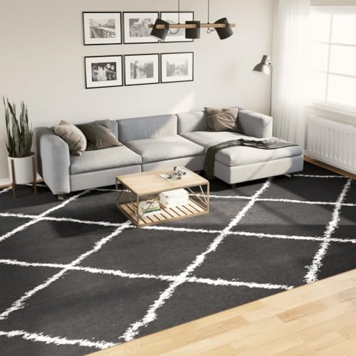 Home Items,Shaggy Tapis à poils longs moderne noir et crème...