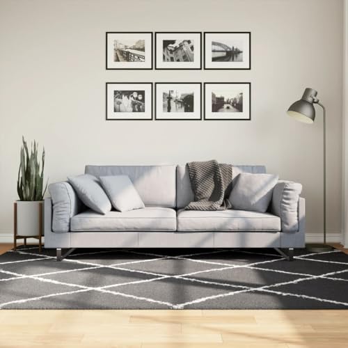 Tapis de salon poil longs faux shaggy moelleux noir monochro...