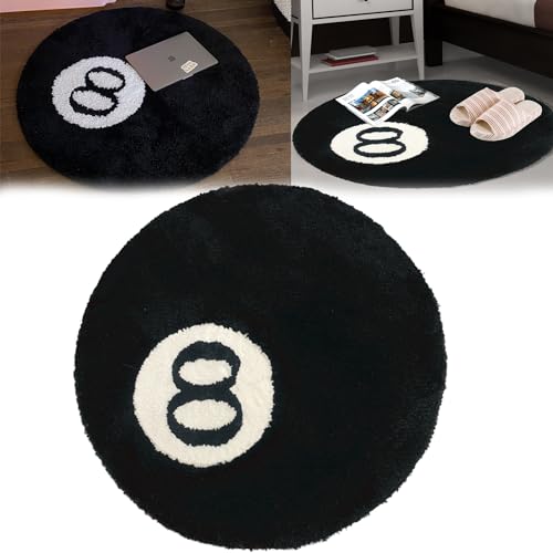 Aisny Tapis Noir et Blanc 8 Boules, Décor Cercle Antidérapan...