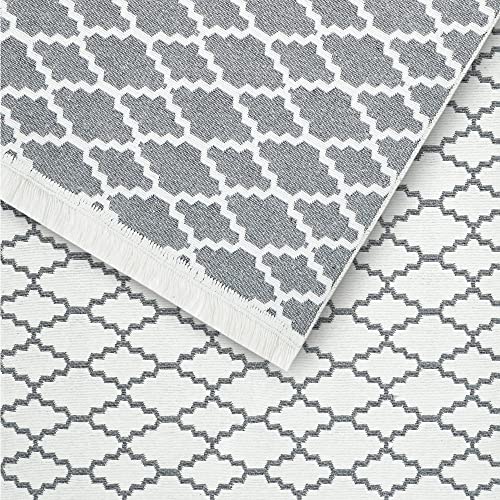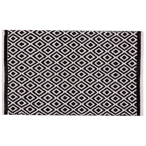 Tapis Noir Blanc 86x53 cm Tissé Réversible Géométrique Diama...