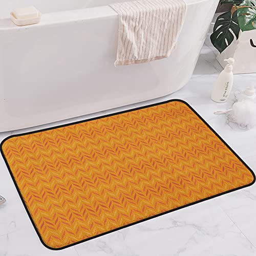 Tapis Absorbant Chevrons Orange, Motifs Feuillus Chevrons