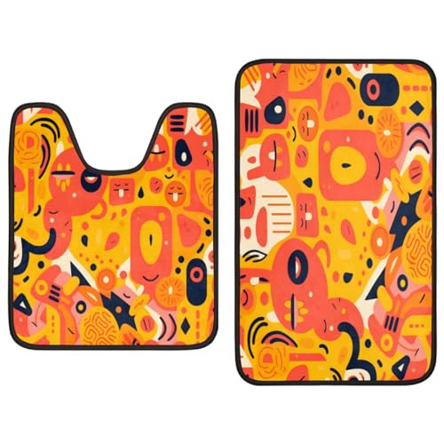 Tapis de salle de bain U forme abstrait orange 2 tapis