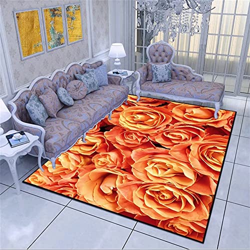 Rugmz Tapis Orange Fille Floral Décoration Salon