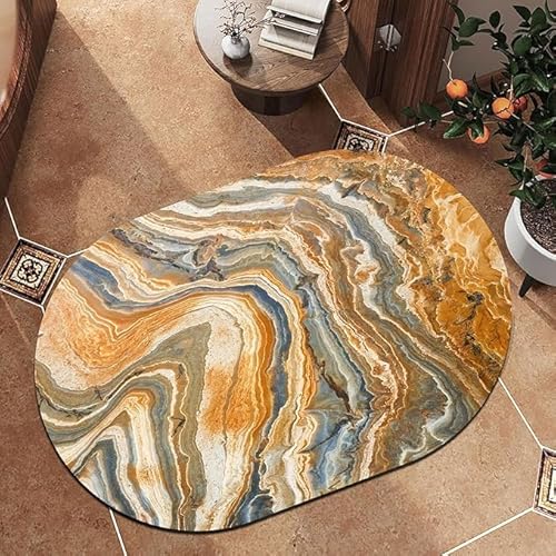 Tapis salon chaise ovale moderne moelleux orange abstrait