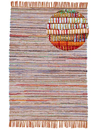 Tapis fin tissé plat kilim chindi orange 120x170 cm moderne...