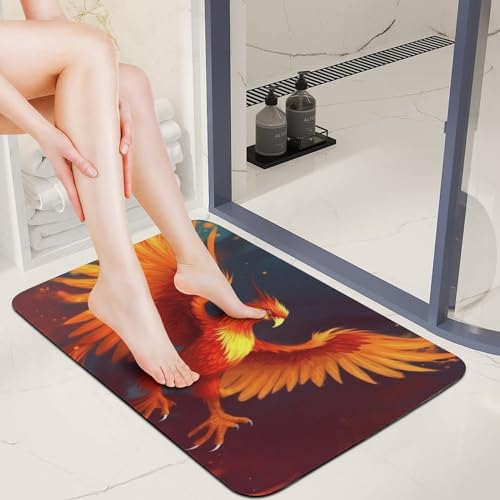 NTVOWPZO Tapis de bain en pierre orange rouge phénix en terr...