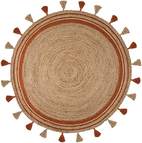 AVG Tapis rond tressé à la main avec bordure en jute et pomp...