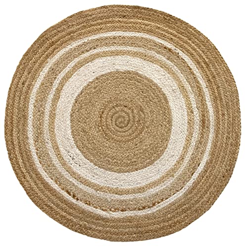 ?️ INCLUS - Tapis Rond (Diamètre 120 cm) Shira Blanc, Jute F...
