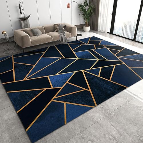 BOONGA Tapis Géométrique Doré et Bleu/Noir, 160x230 cm
