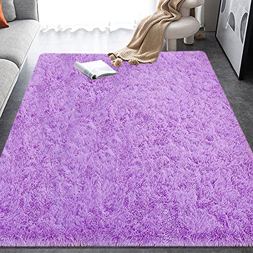 HOMORE Tapis pelucheux moderne à poils longs pour chambre à...