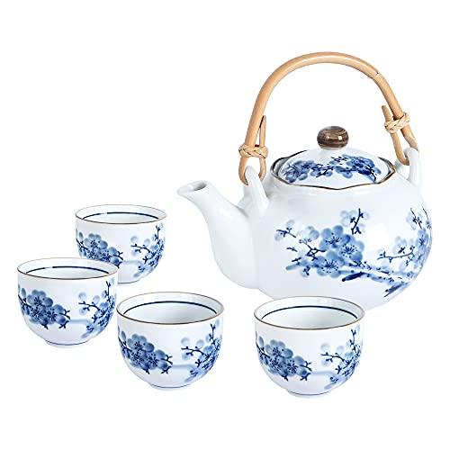 Fleur Prunier Bleu Blanc, Théière Porcelaine avec Poignée Ro...