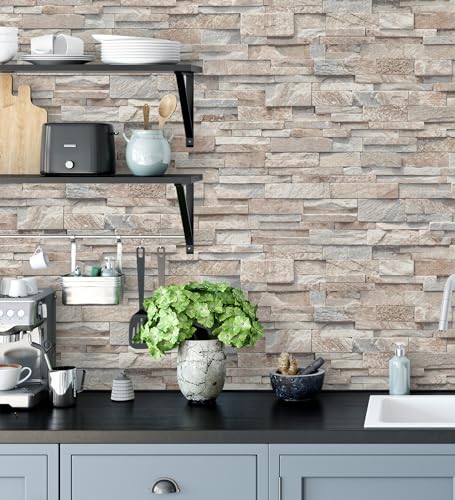 GAULAN - Papier peint effet mur pierre beige rustique textur...