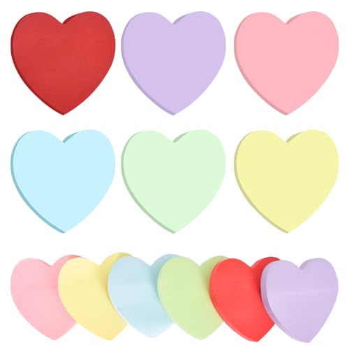Notes autocollantes cœur, bloc-notes adhésifs 70x70mm, 100 p...