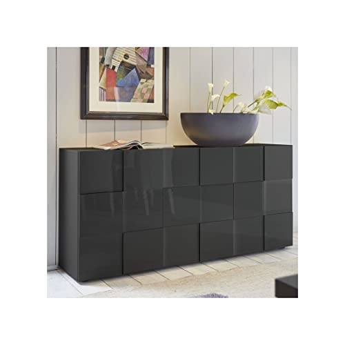 Buffet contemporain avec 3 portes finition laquée gris brill...
