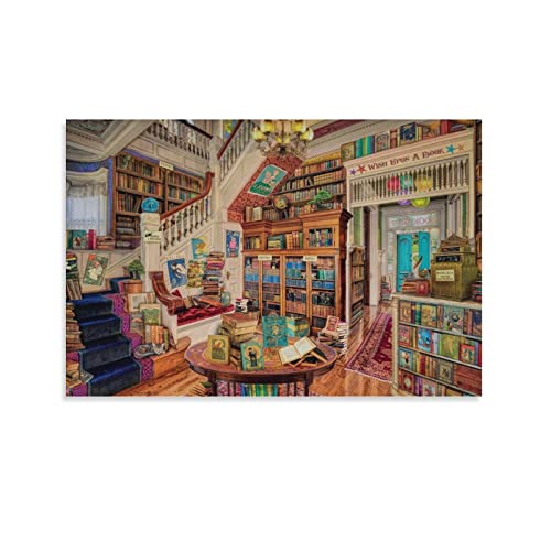 Impression d''art de bibliothèque sur toile encadrée, livres...