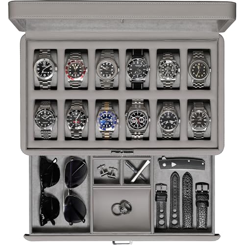 ROTHWELL Boîte à montres en cuir synthétique avec couvercle...