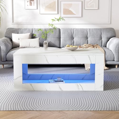 Table Basse LED moderne, Table basse carrée avec télécommand...