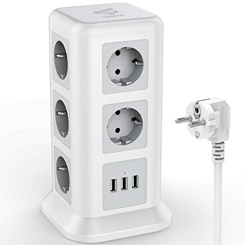 Tessan Multiprise Tour 11 prises 2500W 3 ports USB, protecti...