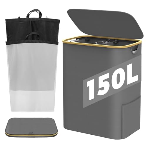 Panier à linge 150L, 2 compartiments, grand panier à linge c...