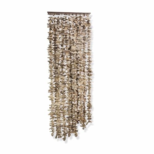 Morceaux de bois flotté enfilés avec le plus grand soin